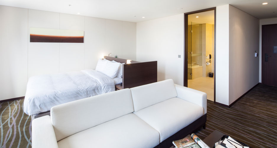JUNIOR SUITE 2인 이하 프리미엄을 선호하는 여행객에게 최선의 선택으로, 여유로운 수납 공간과 Simmons Beautyrest® 의 킹 사이즈 침대 1조가 제공되는 객실입니다. 침구는 100% 오리털, 100% 코튼 소재의