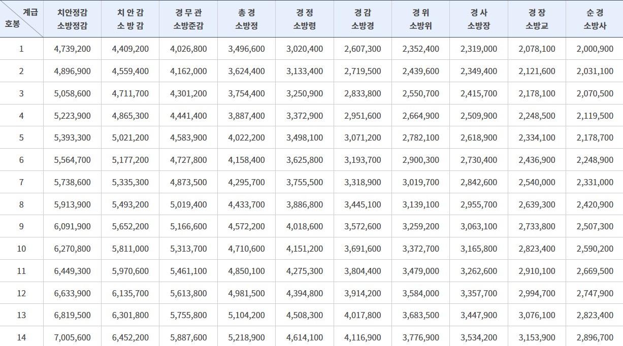 특히 순경부터 경감, 소방사부터 소방경까지의 봉급이 궁금하실 텐데요, 아래 표를 참고하세요!